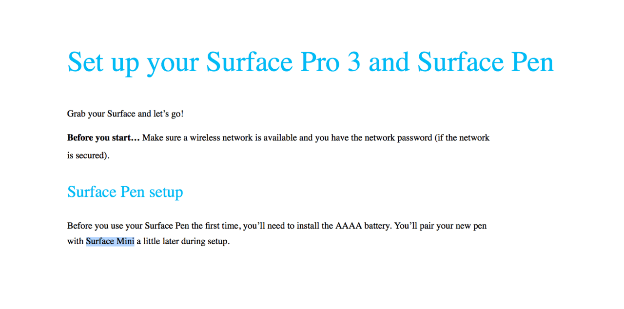 Hay Superficie Mini referencias de todo el Manual del Usuario de superficie Pro 3. Hilarante.