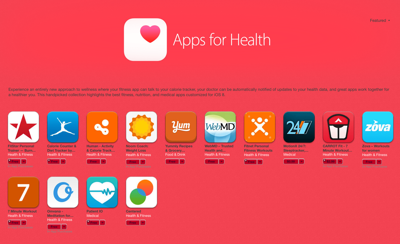 Apple ha lanzado un nuevo "Aplicaciones para la Salud" en el App Store que cuenta con aplicaciones que se integran con la nueva aplicación de Salud en iOS 8.