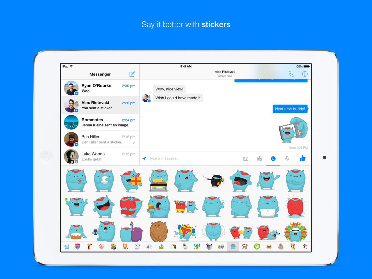 La aplicación de Facebook Mensajero ha sido actualizado con soporte para el iPhone 6. Alcanzar de forma instantánea a la gente en su vida-de forma gratuita. Mensajero es como los mensajes de texto, pero usted no tiene que pagar por cada mensaje (funciona con su plan de datos).