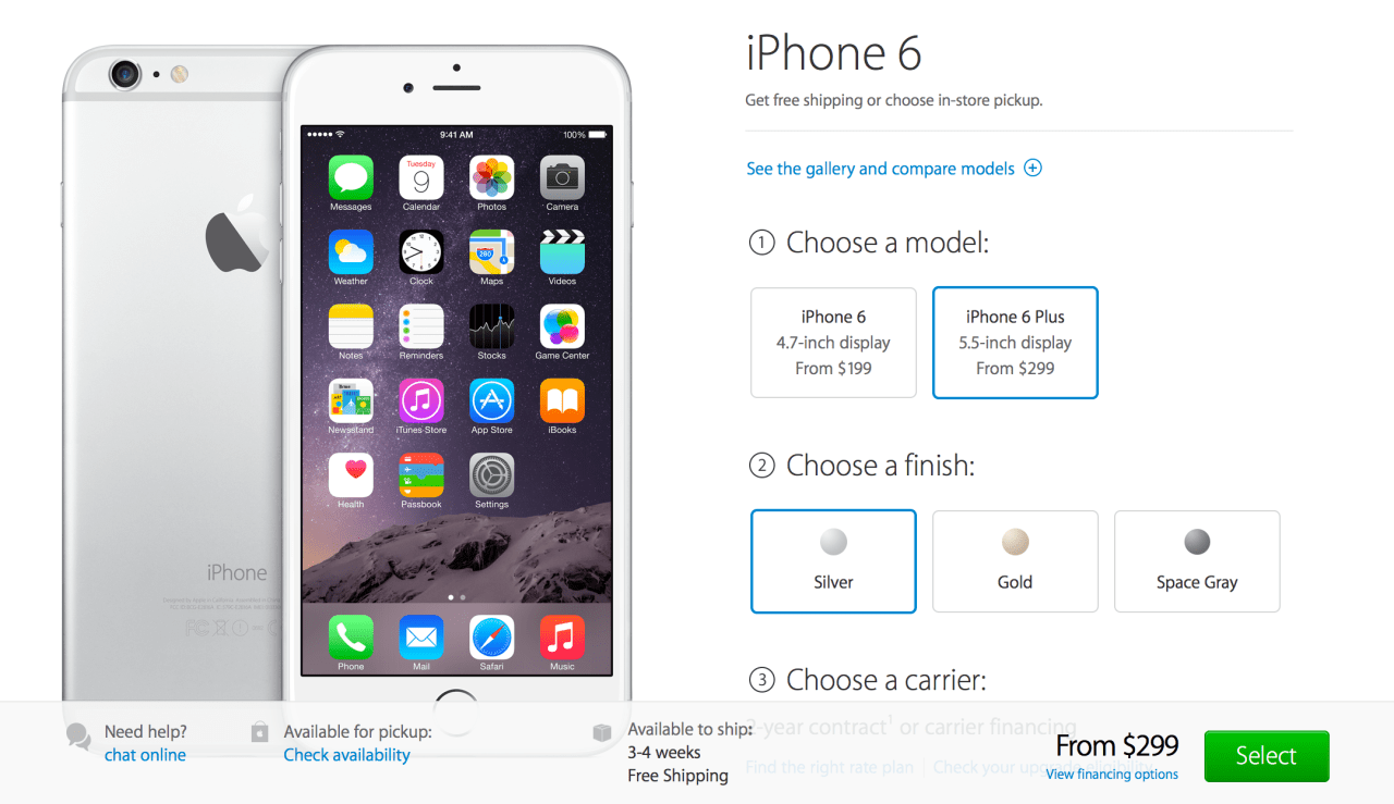 Mientras tanto, la de 4,7 pulgadas iPhone 6 parece ser en stock con una fecha de entrega programada del 19 de septiembre.