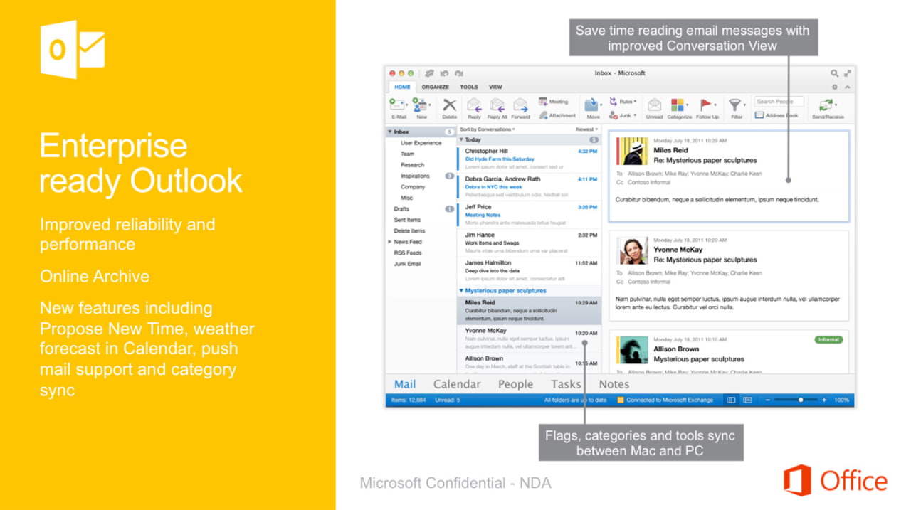 Una presentación de Microsoft que detalla las nuevas características de la próxima versión de Office de Mac se ha filtrado en línea por cnBeta. El sitio sólo filtró detalles de Outlook para Mac 16 ayer.