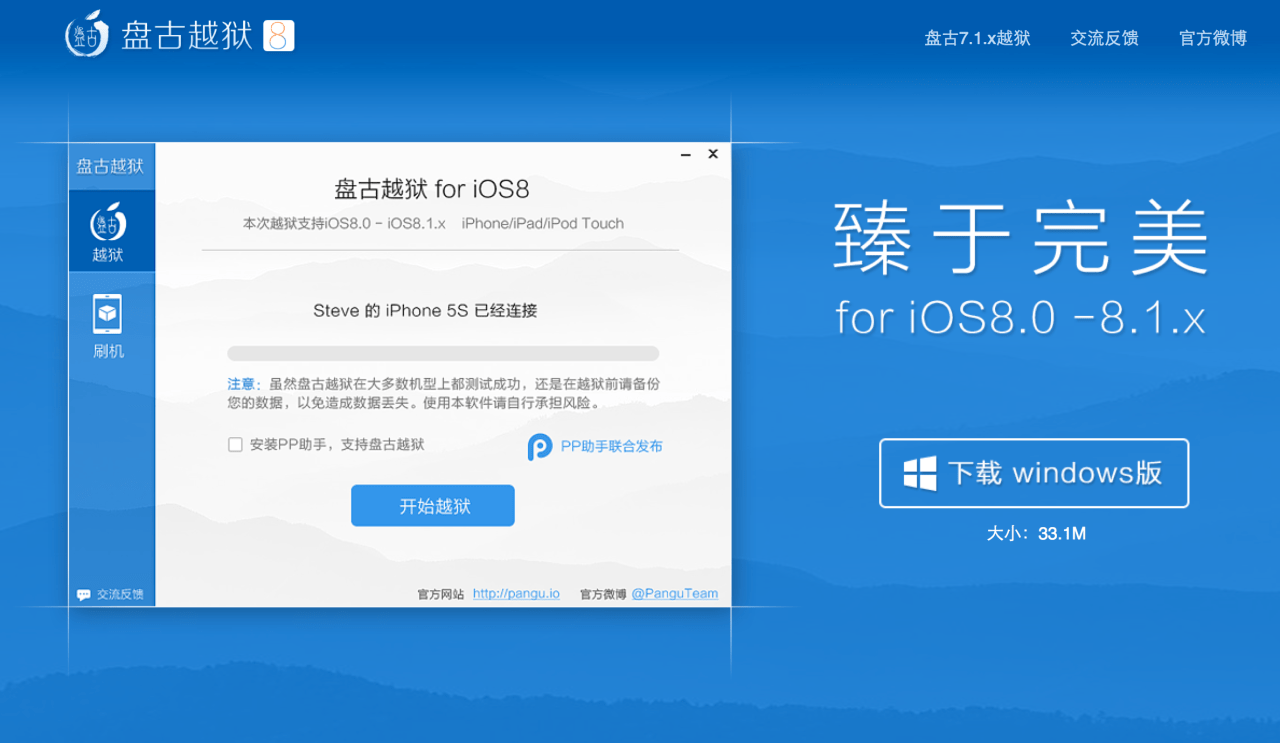 El PanguTeam ha publicado una actualización sobre el estado de su fuga de la cárcel para iOS 8-8,1. A principios de esta semana una utilidad de fuga de la cárcel sólo para Windows Pangu8 fue lanzado para su descarga.