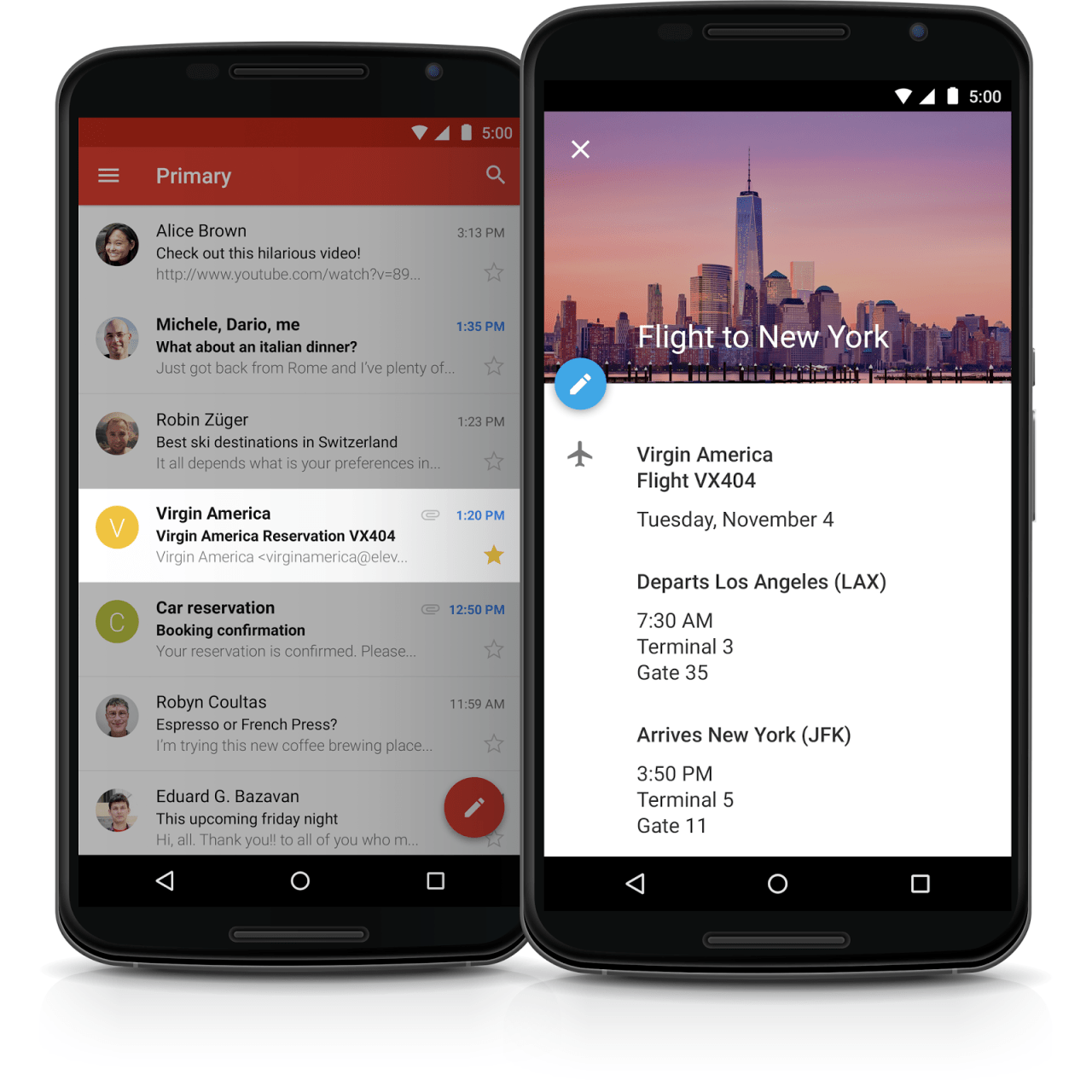 Cada vez que reservar un vuelo, comprar entradas para los conciertos, o hacer una reserva de hotel, las probabilidades son que usted recibe un correo electrónico con las fechas, horarios y otros detalles importantes. Pero, ¿quién tiene el tiempo (o paciencia) para copiar y pegar todo esto en su calendario? En la nueva aplicación de calendario de este tipo de mensajes de correo electrónico se convierten en eventos de forma automática, con cosas como los números de vuelo y horarios de facturación. Ellos incluso se mantengan actualizados en tiempo real si retrasa su vuelo, o que reciben una nueva actualización de correo electrónico.