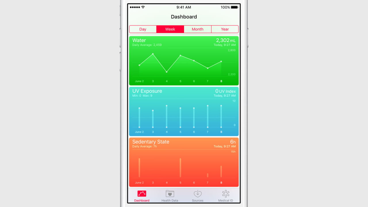 ● aplicación de Salud ahora también puede realizar un seguimiento de la salud reproductiva, la frecuencia con la que estás sentado, y la exposición UV.
