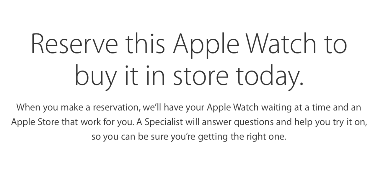 Actualmente, en la tienda de compra de todos los modelos de Apple Watch están disponibles sólo en reserva. Puede reservar el modelo de su elección a partir de las 8:00 am hora local cada día. Debido a la alta demanda, no todos los modelos están disponibles para reserva.