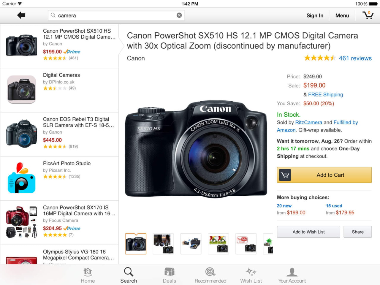 Compare precios y comprobar la disponibilidad al instante mediante el escaneo de un código de barras, tomar una foto o escribiendo su búsqueda. Los clientes de Apple Ver ahora pueden utilizar su voz para buscar productos, compra con 1-Click y construir una lista de compras en su reloj.