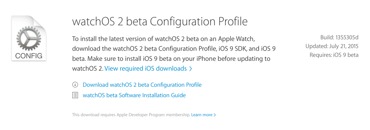 Los desarrolladores pueden descargar el watchOS 2 beta perfil de configuración desde el siguiente enlace ...