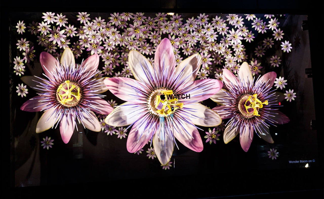 Para crear la pantalla, una variedad de flores que florecen fueron fotografiados en stop-motion. Algunas flores requieren más de 24.000 disparos durante 285 horas. Ocho variaciones de las flores se ampliaron y pintado a mano por artistas de las ventanas. En total, la instalación dispone de 24 grandes, 50 medianas y 5.525 pequeñas flores, además de 240 flores un poco más grandes de los pequeños-plus '. También se crearon las flores utilizando diferentes métodos. Por ejemplo, las flores medianas y grandes se hicieron a partir de resina de fundición, mientras que el más pequeño se imprimieron 3D.