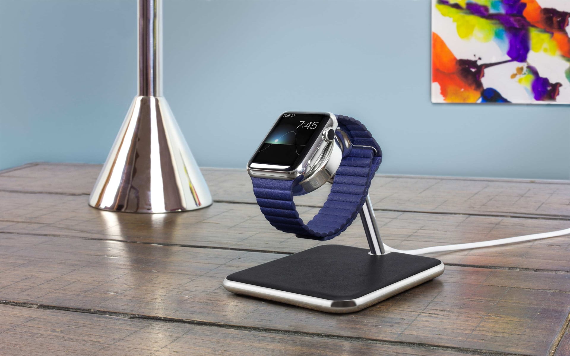 Forté es el más lujoso producto Twelve South hasta la fecha. La base ponderada refleja los bordes redondeados, elegantes de la cara de su reloj. El aumento de la base es un brazo de cromo delgado que tiene un lugar destacado Apple Seguir para la carga y visualización de las notificaciones, mientras oculta el cable de carga. Se complementa perfectamente con el acero inoxidable o nuevos acabados de aluminio. Un cojín de cuero genuino protege Mira las bandas, de la banda de deporte a los amarillos de 18 quilates de oro bandas edición, y todos los que están en el medio.