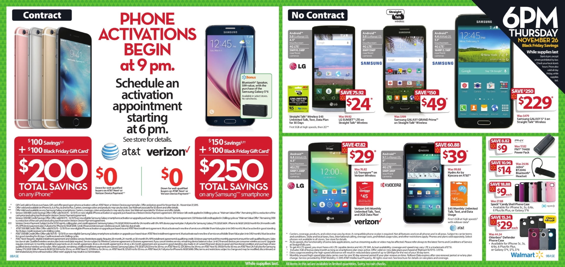 ● El iPhone en contrato también se ofrece con un ahorro de $ 200. El doscientas está compuesto por una tarjeta de regalo Viernes Negro de Walmart de $ 100 y un crédito de $ 100.