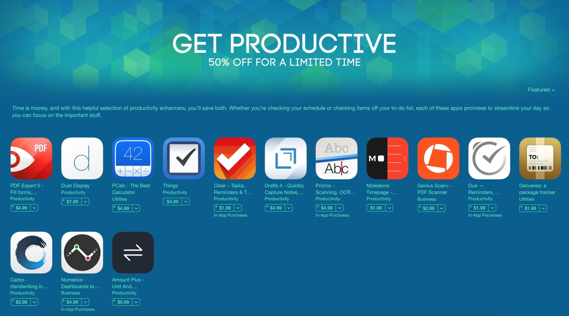 Apple ha anunciado una venta sobre el 50% en algunas aplicaciones de productividad populares.